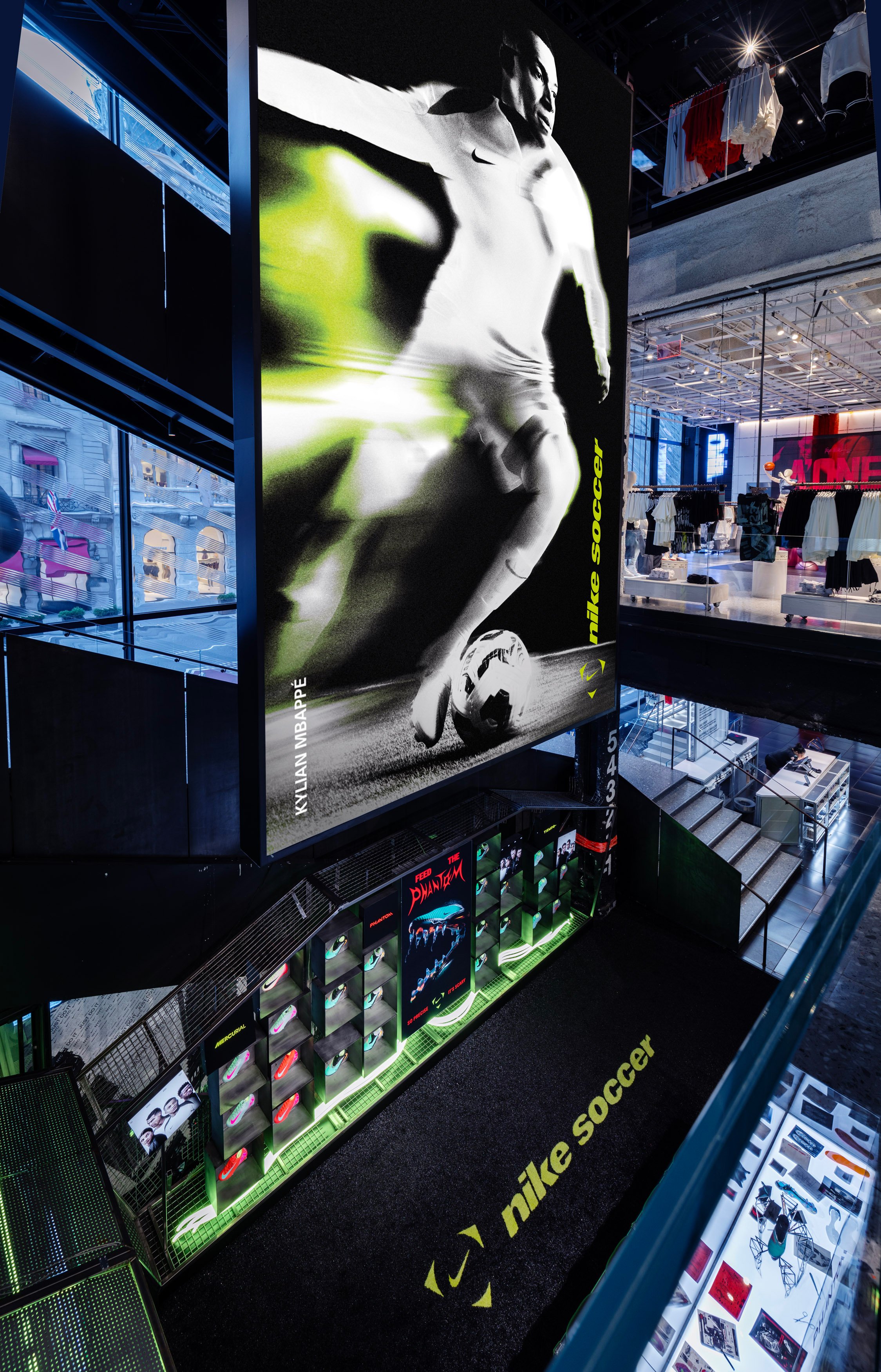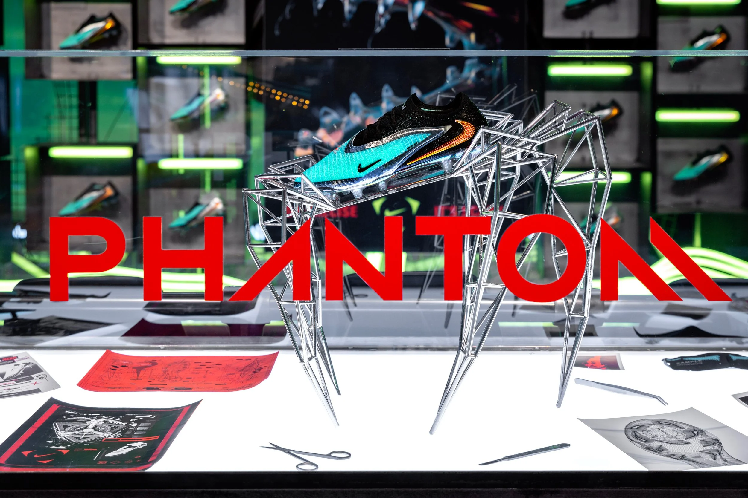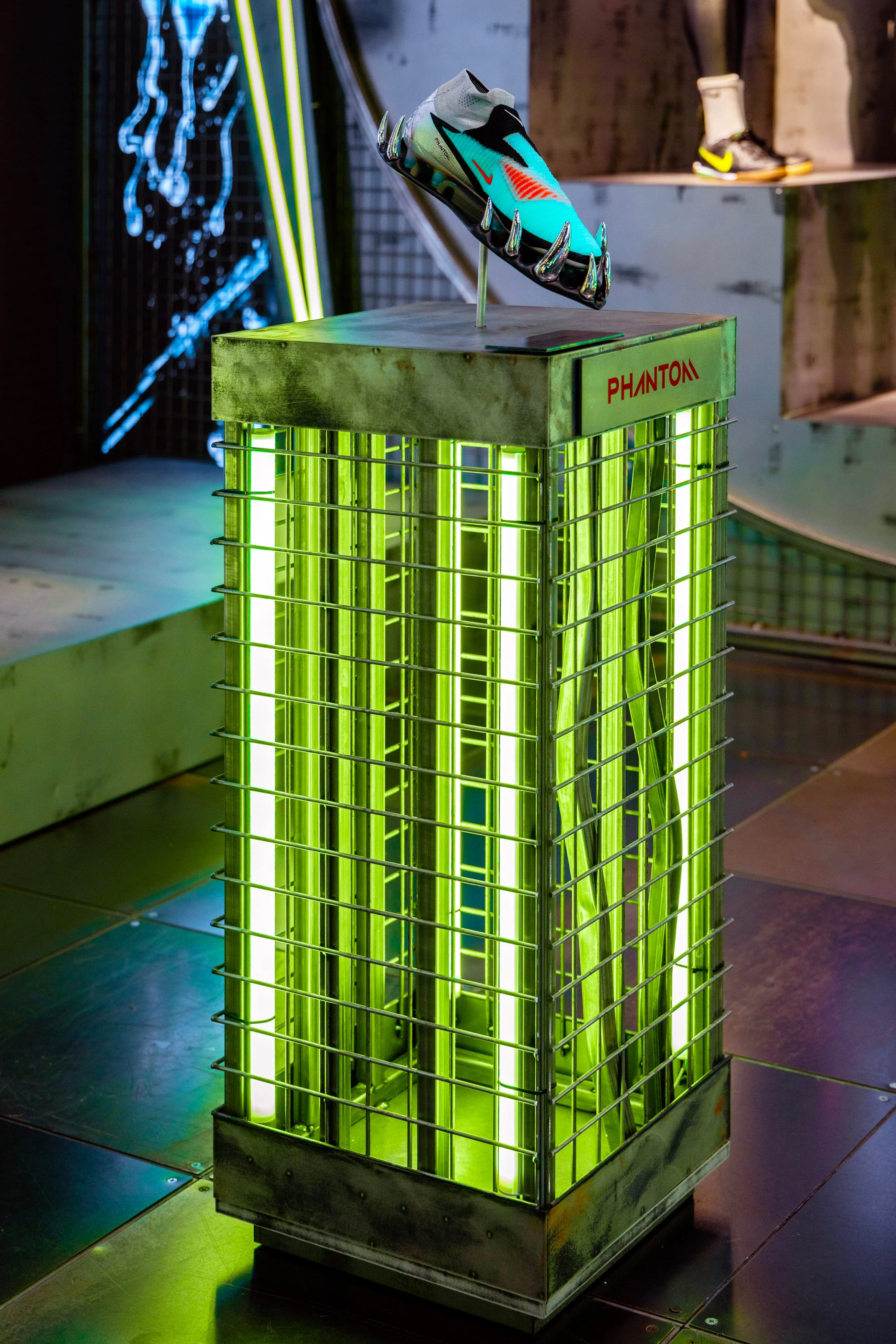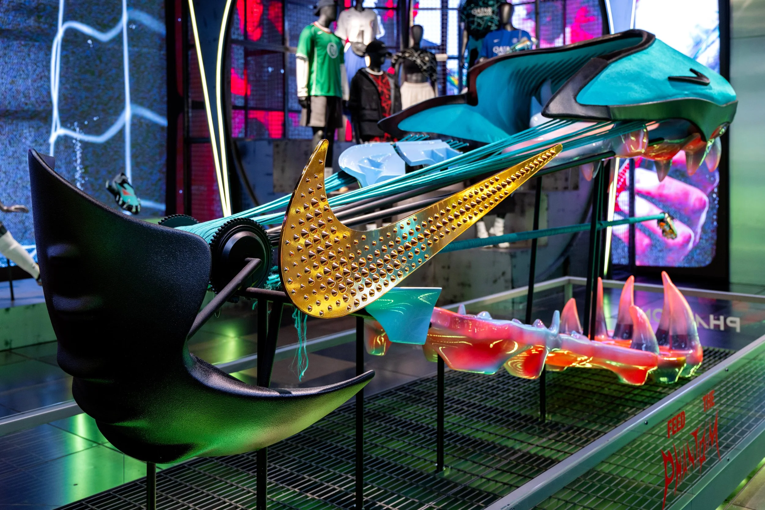 In 2025 Nike set out to unleash the new attitude and identity of Nike Global Football. An immersive retail journey embodying a striker’s twisted dream and a defenders worse nightmare. I helped bring this vision to life across all of North America. The concept, ‘an arena of fear’ elevated their pinnacle Phantom boot to scary levels.